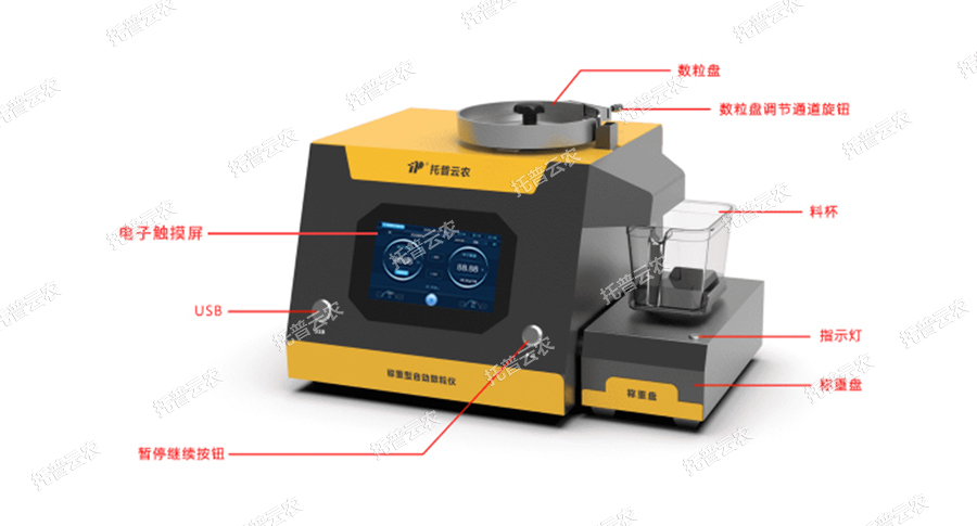 稱重型電子自動數粒儀由微電腦自動控制,完全自動化操作,同時內置高精度重力傳感器,支持自動稱重、自動數粒、自動計算千粒重等,廣泛適用于圓形及長形種子、大中小粒種子,比如水稻、小麥、玉米、花生、油菜、芝麻等作物的種子。